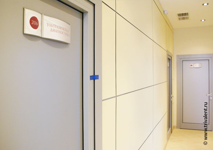 Медицинский центр Олимп оказывает комплексные врачебные услуги в амбулаторном и стационарном лечении. Центр располагается на трёх этажах здания и имеет сложную систему коридоров, что и стало основным аргументом в решении о необходимости системы визуальной навигации.